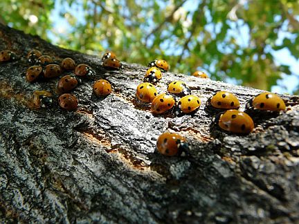 trees. As the temperature cools the Seven-spot Ladybug congregates