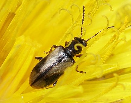 Other: This beetle can be quite common on wild rose, however it is not fussy and will feed on most other flowers.  In Calgary, it has been collected/observed on wild rose, dandelion, strawberry and rhubarb flowers. It is one of the first beetles to become active in the spring and can be seen out when snow cover is still present.  Coloration of the elytra and pronotum can be quite variable. Little is known about the larval stages. (Arnett, 2002)