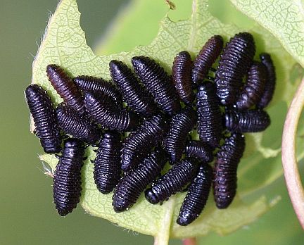 leaves. The larva emerge shortly after and begin feeding. They